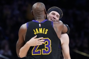 据湖人记者Jovan Buha报道,詹姆斯在更衣室接受记者采访时,里夫斯过来插话,他说:“很棒的发展联盟球员,发展联盟培养了他。”