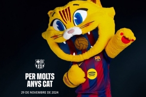 巴萨在俱乐部成立125周年纪念日推出吉祥物CAT,如今CAT迎来了一岁生日,巴萨官方社媒晒出CAT的生日海报,配文:“最棒的吉祥物一岁啦,生日快乐, CAT!”