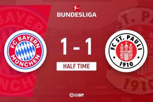 体育资讯11月29日讯 北京时间11月29日晚22时30分,2025-26赛季德甲第12轮在安联竞技场展开角逐,拜仁慕尼黑主场迎战圣保利。上半场洪通吉6分钟首开记录+伤退,莱默尔后场被断,卡尔和比朔夫中柱,格雷罗扳平比分,迪亚斯倒地助攻,拜仁主场暂时1-1战平圣保利。