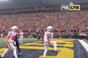 体育资讯11月30日讯 今日俄亥俄州立大学橄榄球队外接手布兰登·伊尼斯在对阵密歇根大学的比赛中完成达阵。