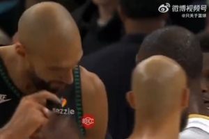 赛后发生有趣一幕,戈贝尔指着自己的脑门,对杰伦·布朗面授机宜,大致意思是别整发际线粉了,像我这样多好。有趣的是,在这过程中另一个大光头德里克·怀特从他俩身前走过。