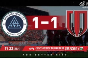 2025赛季比赛日Vlog30——成都蓉城1-1战平深圳新鹏城,用季军为2025联赛征程画下热血句点!开场的失球没有让我们退缩,费利佩一记强有力的头槌,瞬间点燃了远征军的心,让客场沸腾!虽然未能反超,但球员们拼尽全力、永不言弃,用一场平局为这个赛季画上句点。至此,成都蓉城以17胜9平4负积60分的成绩位列第三名。