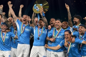 那不勒斯2024-2025赛季夺得意甲联赛冠军,意大利球员协会社媒晒出海报,宣布那不勒斯当选上赛季最佳球队。