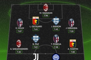 中场:萨勒马科尔斯(米兰)、帕斯(科莫)、波贝加(博洛尼亚)、A·马丁(热那亚)
