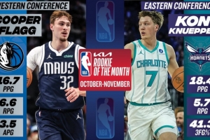 据悉,弗拉格和克尼佩尔都来自杜克大学,两人上赛季还是队友,这也是NBA自2001-02赛季设立东西部月最佳新秀以来首次出现此类情况。