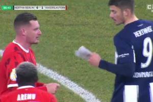 比赛时发生搞笑一幕,柏林赫塔在6-1领先情况下,9号前锋考纳茨基抢了凯泽斯劳滕队长里特从教练那里得到的战术纸条。