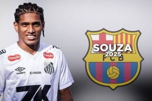 身价300万欧!每体:巴萨正关注19岁桑托斯左后卫索萨