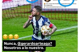 赛后,关于拉莫斯做出闭嘴手势的图,蒙特雷球员赫拉尔·阿尔蒂加社媒写道:他一个人的历史比这支球队和这座城市加起来还要多。