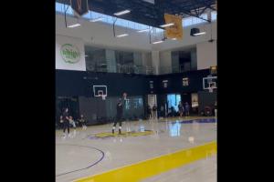 东契奇训练结束之后的固定节目,投射中场三分