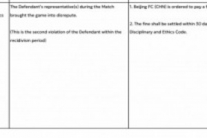 亚足联官方表示,国安的行为损害比赛声誉,违反亚足联纪律和道德准则第50.1条,这是国安第二次违规,对国安处以6250美元罚款,罚款应自本决定送达之日起30日内支付。