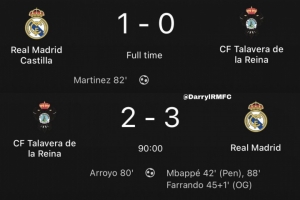 上个月的西协甲比赛中,卡斯蒂利亚1-0击败塔拉维亚,而今日皇马一线队被塔拉维亚攻入2球。