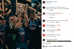他也在赛后通过社媒晒出自己的捧杯照,并配文:“今年的第六座奖杯🏆全队做得非常棒!巴黎充满魔力❤️💙”