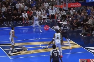 GIF-克莱三分瞄了一下 直接打到篮板侧沿