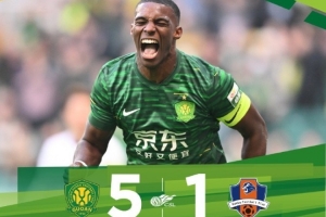 中超联赛第30轮,北京国安主场5-1战胜梅州客家