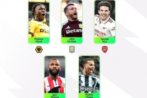 体育资讯1月5日讯 英超官方评选出本轮最佳球员候选名单,其中赖斯领衔入选,具体如下: