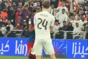 体育资讯01月12日讯 西超杯巴萨3-2击败皇马夺冠,场边镜头记录了同为西班牙国家队队友的亚马尔与赫伊森的一次冲突。