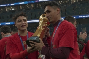海港后卫吾提米江在社媒写道:“看到奖杯🏆还是觉得一点也不累,一切都值得。给今年的联赛打上了完美的句号。2025.11.22。❤️❤️”