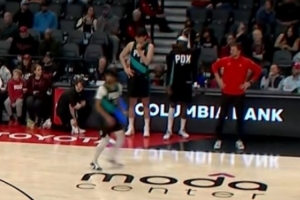 体育资讯1月23日讯 今日开拓者127-110战胜热火,比赛进行到第4节最后一分钟,胜负已定,杨翰森在场边准备出场,但是依旧没能等到这短暂的机会。