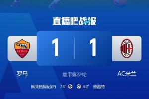 体育资讯01月26日讯 刚结束的意甲,罗马1-1战平米兰,本赛季首次战平。