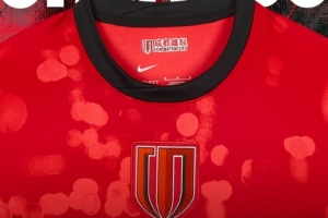 全新主场球衣,灵感根植于这座城市的夜色与光影。标志性红色之上,流动的光斑若隐若现,如城市灯火洒入夜幕,也似看台呐喊凝聚成的能量波纹。黑色细节精准勾勒轮廓,动静之间,既有锋芒暗藏,亦有情感涌动。