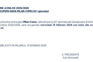 体育资讯1月31日讯 据意甲联赛官网的消息,AC米兰主场与科莫的补赛时间确定,将在北京时间2月19日03:45进行。