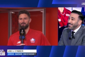 体育资讯11月26日讯 法甲第13轮,里尔4-2战胜巴黎FC,吉鲁上演梅开二度。赛后,吉鲁接受了前国家队队友拉米的采访,并进行了一番轻松的交谈。