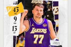 此役,东契奇出战38分16秒,投篮30中14,三分14中7,罚球11中8,得到43分9篮板13助攻1抢断1盖帽。