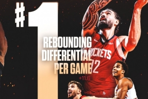 火箭目前场均净胜对手11.6个篮板,联盟第一。场均进攻篮板数为16.2个。
